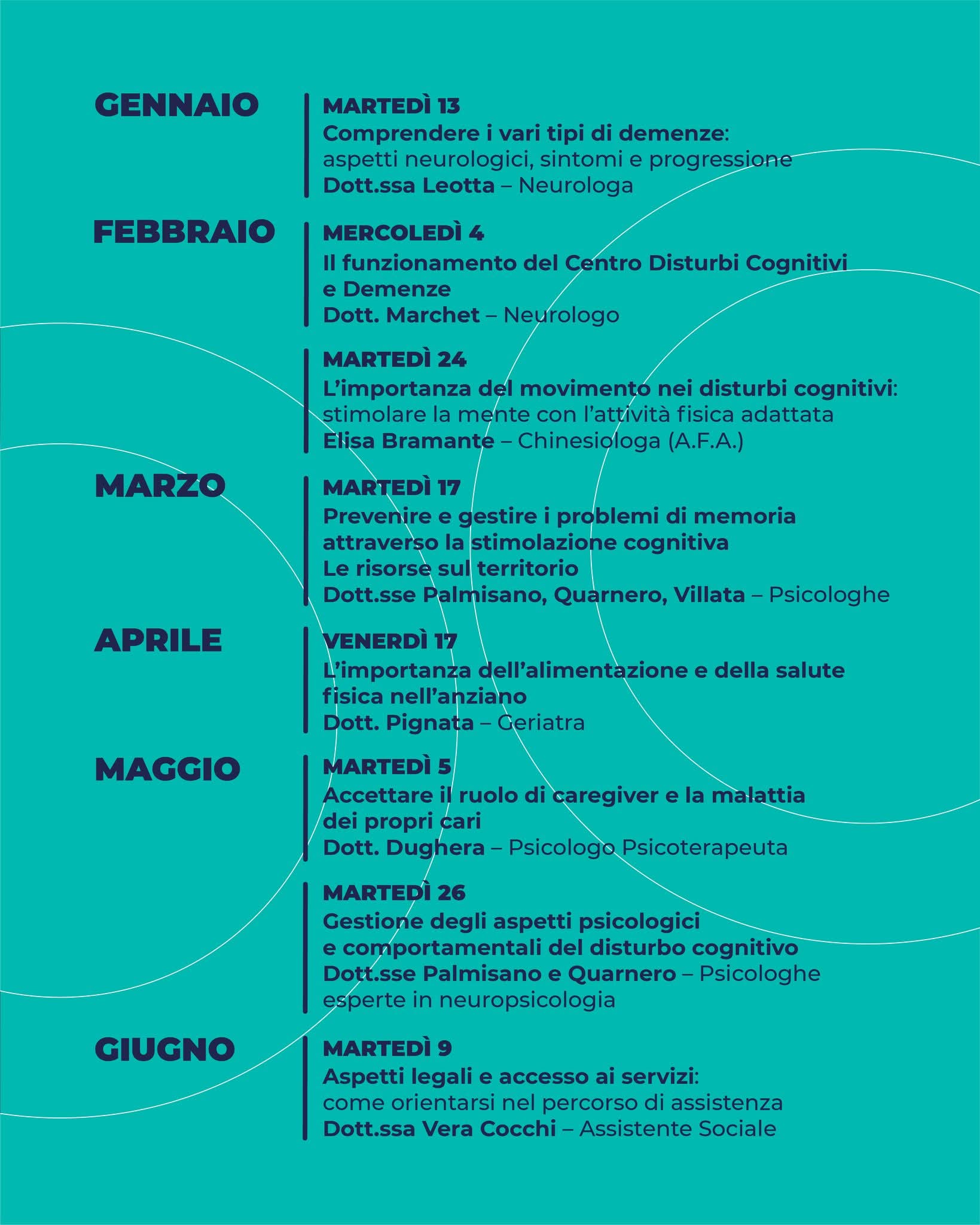 Il Gruppo ARCO organizza da gennaio 2026 un ciclo di incontri gratuiti rivolto a chi a vario titolo si occupa in famiglia di persone con demenza o disturbi cognitivi. E’ un’occasione per acquisire strumenti grazie ad un tempo dedicato a comprendere meglio la malattia e a prendersi cura di sè.